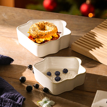 Ciotola in ceramica a forma di casa di cartone animato piatto da antipasto ristorante bianco retrò ciotola di insalata creativa per immersione piatto di salsa